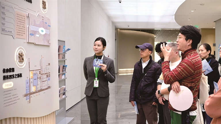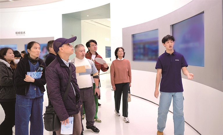 在园区标志性建筑莫比乌斯环楼梯前,众人驻足拍照。唐可昕补充道:“它象征着科学探索永无止境,也代表着科学家们不设限的精神。”