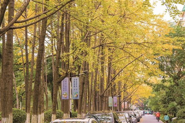 初冬时节,杭州街头被金黄的银杏装点得格外浪漫。当前,杭州的银杏林正处于最佳观赏期,叶片黄化率将进一步提升,市民可趁着晴好天气前往打卡,感受冬日里的金黄诗意。图为杭州朝晖公园银杏美景。