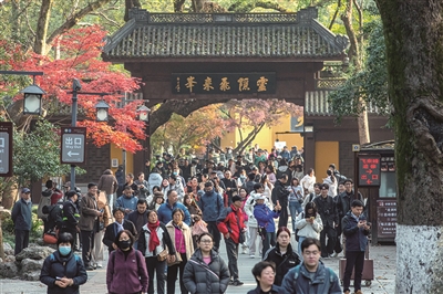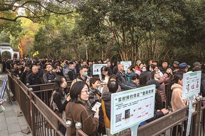 昨天,杭州灵隐飞来峰景区正式开启“免票时代”,实行“实名预约、分时游览”的预约制度。
