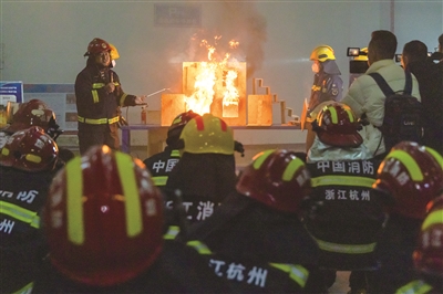 昨天上午,消防员通过木质的普通住宅模型,展示了火灾初期、发展以及猛烈燃烧等阶段。