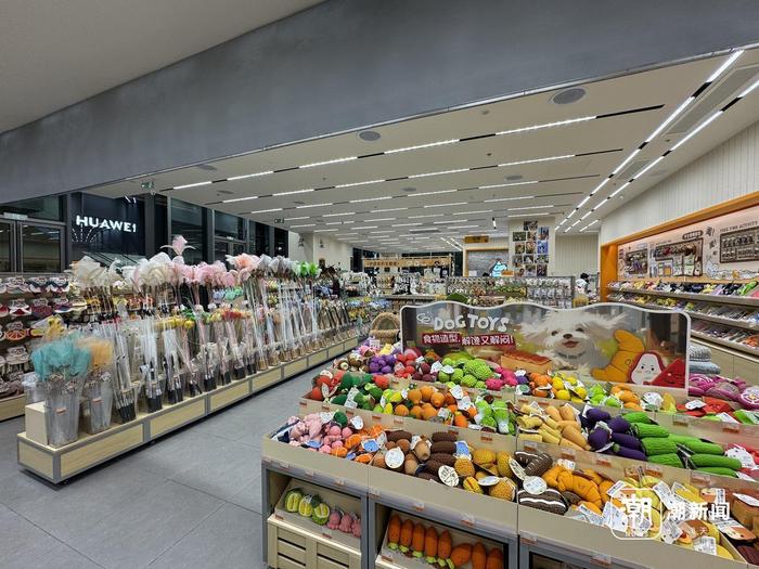 玩具区同样也是花样百出,猫咪专属的羽毛逗猫棒、狗狗喜欢的耐咬乳胶玩具,还有能发声、发光的互动款,让人眼花缭乱。