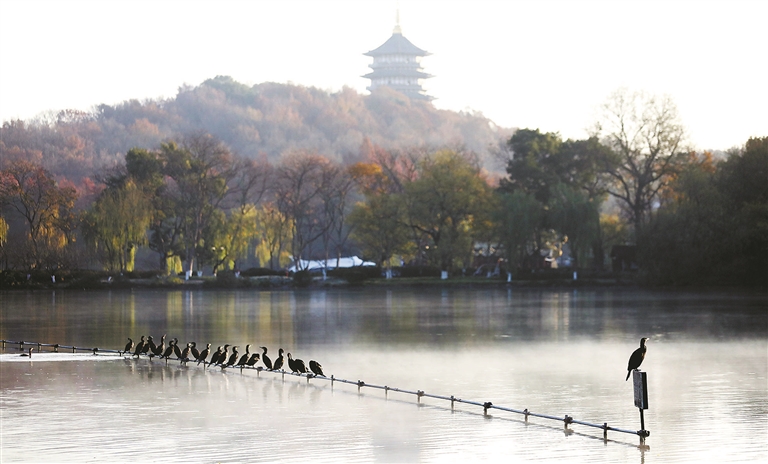 昨天清晨,西湖小南湖一带的水面上薄雾氤氲,在晨光照射下宛如仙境,湖岸边的草地上寒霜覆盖,恰似铺了一层洁白的积雪。当日,杭城的最低气温临近冰点,仅为0.2℃,刷新了今年入冬以来的最低气温纪录。不过,据气象预报,未来一周将持续晴好天气,气温将稳步回升。