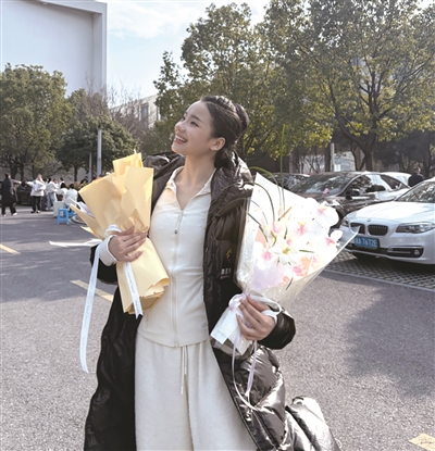 考生们手里都捧着鲜花