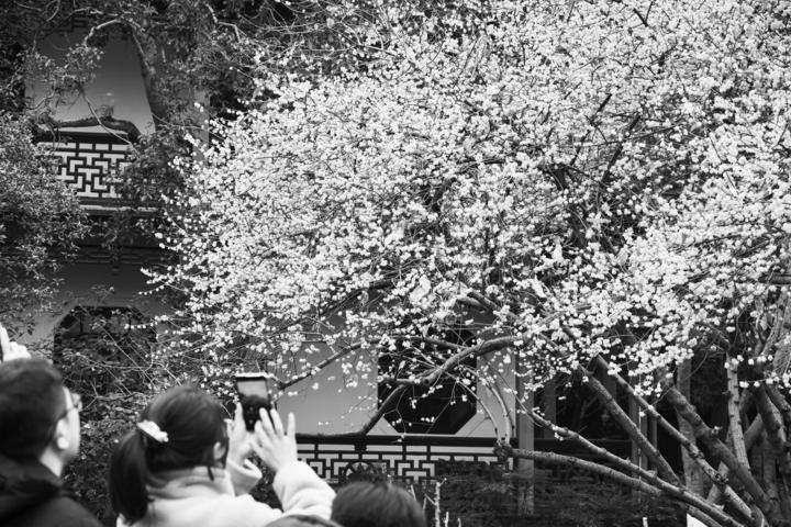 而在孤山赏梅,不仅是一种视觉享受,更是一场与历史文化的邂逅。这里蜡梅分布广泛,放鹤亭、中山纪念亭旁,都是不错的观赏地。目前,梅花也仍含苞待放,第一批早梅零星点缀在枝头,主要集中在孤山梅园与平湖大草坪一带,但要想看到白梅似雪,红梅如霞的盛景还得再多等些日子。