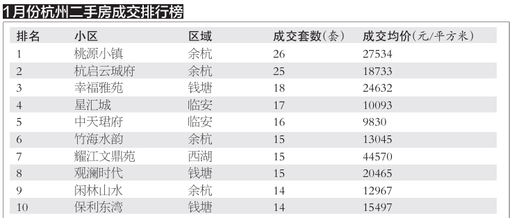 不过,从成交前列的小区来看,1月份的杭州依旧是低价小区“唱主角”。在成交量前20的小区中,有12个小区的成交单价低于20000元/平方米,基本都位于余杭、钱塘、临平、萧山、临安的郊区板块。