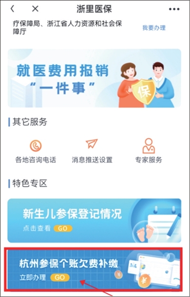 ③在“浙里医保”界面下滑找到“杭州参保个账欠费补缴”。