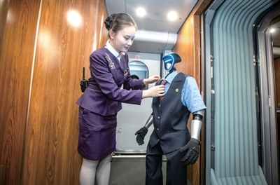 这位机器人乘务员目前还处于“实习”阶段,如果你乘坐G46次、G41次、G7566次、G7511次等“西子号”列车,有可能会偶遇它。