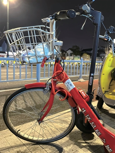 小袁说,2月7日22点多他下班,把电动滑板车停在苏州临顿路地铁站附近,突然发现旁边有一辆杭州小红车,车头还上了锁。“当时我以为是骑行爱好者从杭州一路骑回来的,我在杭州上学工作生活过,已经5年没回杭州了。”