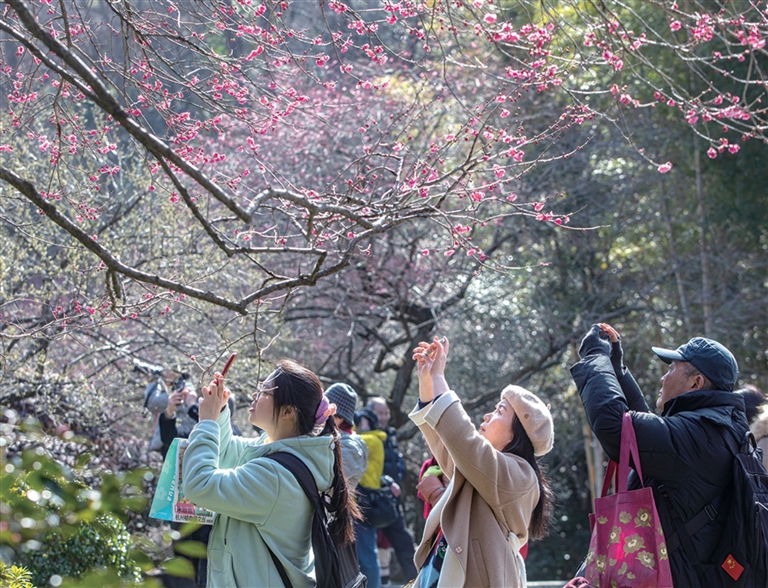 杭州植物园灵峰探梅,游客赏梅拍梅。 记者 陈中秋 摄