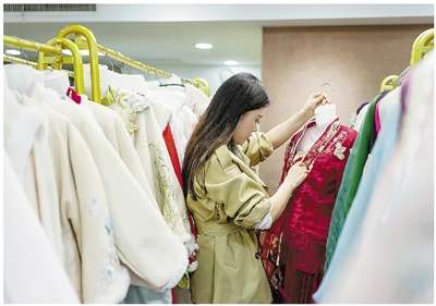 付蒙娜与汉服的缘分,要从大学时代说起。“我大学是在西安读的,毕业后先做了电商和自媒体,但一直很喜欢汉服,便和同学一起创业。”她说,“花间月”起初只是一家开在西安景区旁,仅10平方米的小店,而后逐步发展。