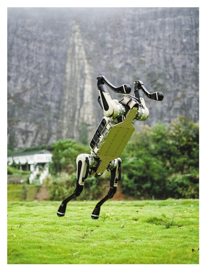 四足机器狗“天狼”在崎岖的草坡上多次脱困,身手“敏捷”。