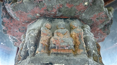 幢身每面均刻《陀罗尼经》,为唐代书法家胡季良所书。隔着玻璃,经幢细节有些看不清,可以贴近,调整角度仔细查看。清代金石学者阮元在《两浙金石志》中称龙兴寺经幢为“杭州金石之冠”,这不光是年份的久远,也是对它艺术性的评价。龙兴寺经幢对研究我省佛教经幢的发展以及唐代经幢建筑、造像、书法艺术等都有重要的价值。