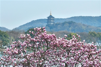 晴到多云的好天气会持续到周日,非常适合出门踏青赏花。杭州西湖国宾馆的“粉玉兰女王”眼下正值最佳观赏期。这棵60年树龄的粉色二乔玉兰被誉为“杭州玉兰天花板”,盛花期就在这几天。粉霞般的花朵与苏堤、雷峰塔相映成趣,想去看它的朋友,3月15日之前记得先在西湖国宾馆公众号预约。