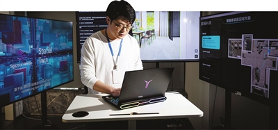 群核科技工作人员在操作空间大脑,该系统基于空间语言模型SpatialLM搭建,相较于传统大语言模型,SpatialLM不仅能理解文本指令,还能输出“空间语言”。