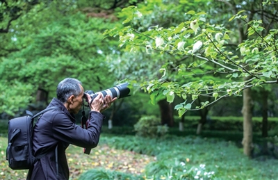 每年4月中下旬,就是珙桐的最佳观赏期,枝繁叶茂,“白鸽”翩翩。它那两片硕大洁白的“花瓣”,实际上是叫作“总苞”的叶状结构,植物园专家说,中间那一团紫色的“花蕊”才是真正的花。