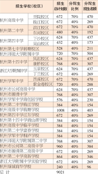 与去年相比,今年新增2所招生学校(杭二中高新学校、浙大附中实验学校),另外,杭师大附中等7所扩班招生学校名额有所增加,所以分配生人数增加了。