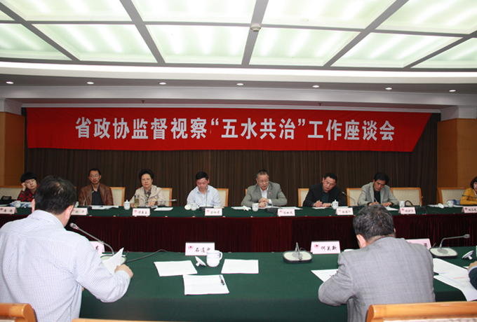 下午,省政协民主监督组在杭州召开座谈会,通报明察暗访有关情况和发现的问题,听取市、区有关“五水共治”工作情况和民主监督工作情况汇报。