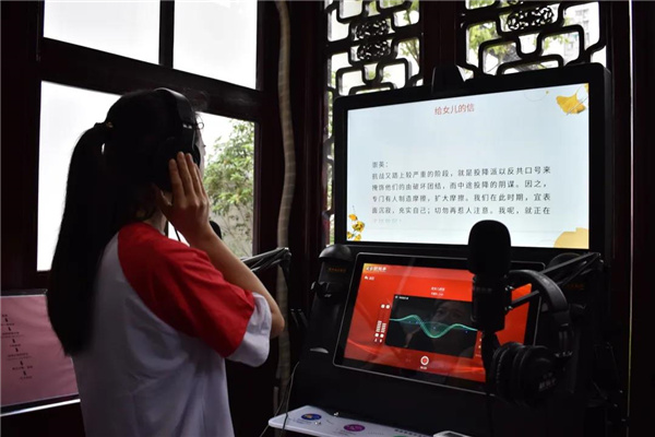 馆内朗读亭特别设置了“红色诗歌”“红色家书”“感悟四史”等红色经典版块,以及“吴越文心”杭州历史文化主题版块,参与者可以从中选择素材朗读,以声献礼。
