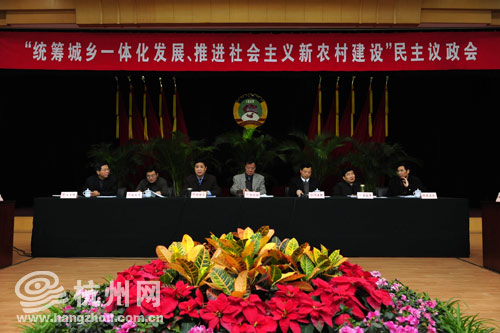 昨天,这场特别受关注的市政协民主议政会,主题为“统筹城乡一体化发展、推进社会主义新农村建设”。市政协主席孙忠焕、市政协副主席董建平、赵光育、吴正虎参加。副市长何关新通报相关情况。市政协副主席俞国庆主持。
