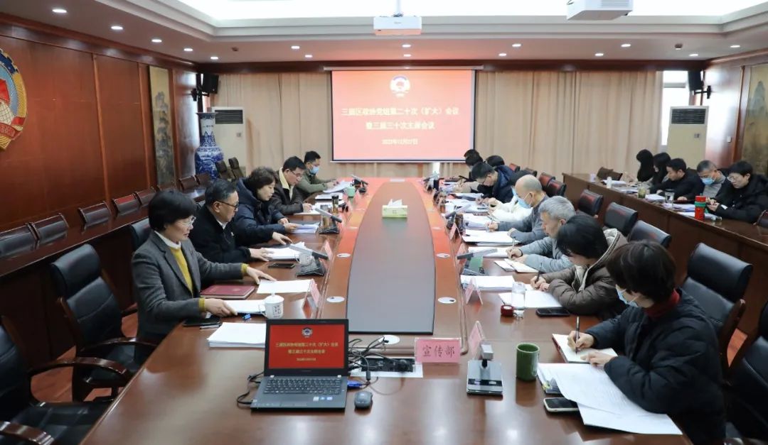12月27日上午,区政协党组第二十次(扩大)会议暨三届三十次主席会议召开。区政协党组书记、主席张玮主持,党组副书记、副主席周翔,不是党组成员的副主席夏福志、谢春凤、谢惠芬,党组成员、秘书长周皓出席会议。