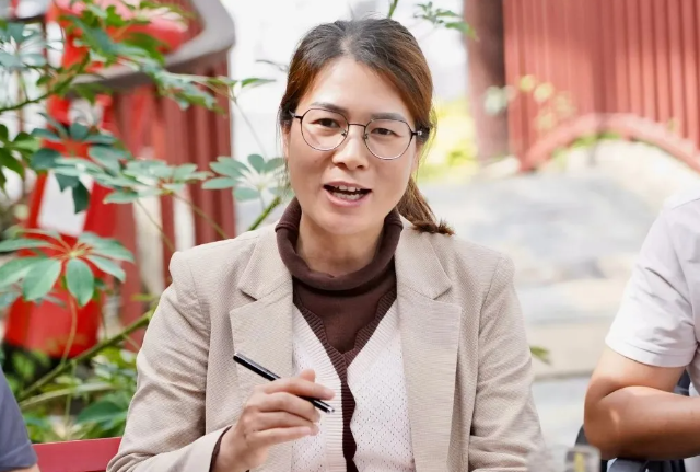 ▲县文广旅体局产业发展科科长牛洪霞建议要从开发研学产品、做好旅游接待中心合作洽谈、组织比赛活动等方面提高百江农文旅知名度,做好“农业+”的后半篇文章。