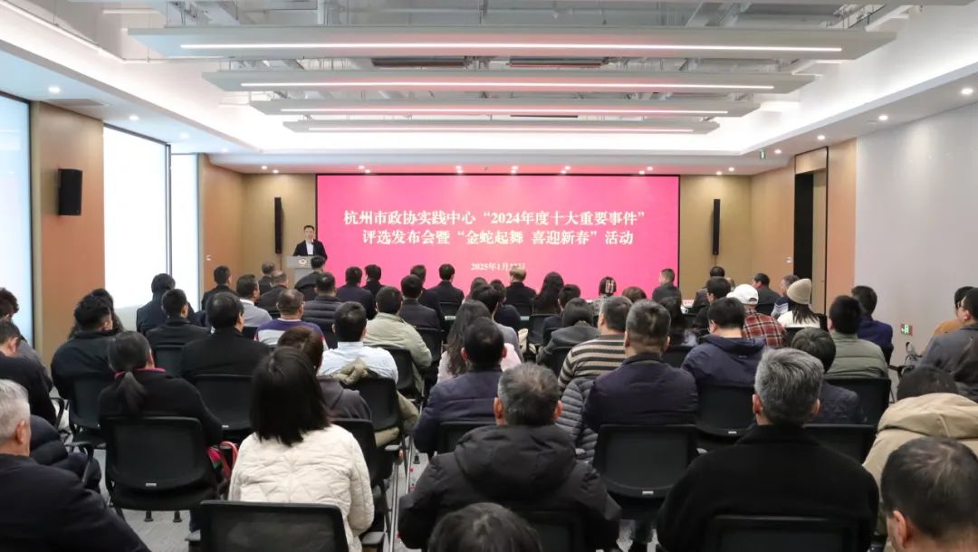1月22日下午,实践中心“2024年度十大重要事件”评选发布会暨“金蛇起舞 喜迎新春”活动启动仪式顺利举行。市政协副主席毛溪浩出席并讲话,市政协办公厅副主任、实践中心专班负责人朱国发布实践中心“2024年度十大重要事件”评选结果。市政协委员代表、市民群众代表以及实践中心运营专班成员等参加活动,“杭州政协实践中心”视频号对发布会和启动仪式进行现场直播。
